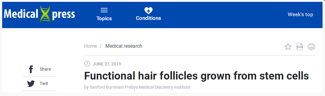 Sanford Burnham Prebys的科學(xué)家利用人體誘導(dǎo)的多能干細(xì)胞(iPSCs)創(chuàng)造了一種通過皮膚生長的自然頭發(fā),這是一項可以徹底改…